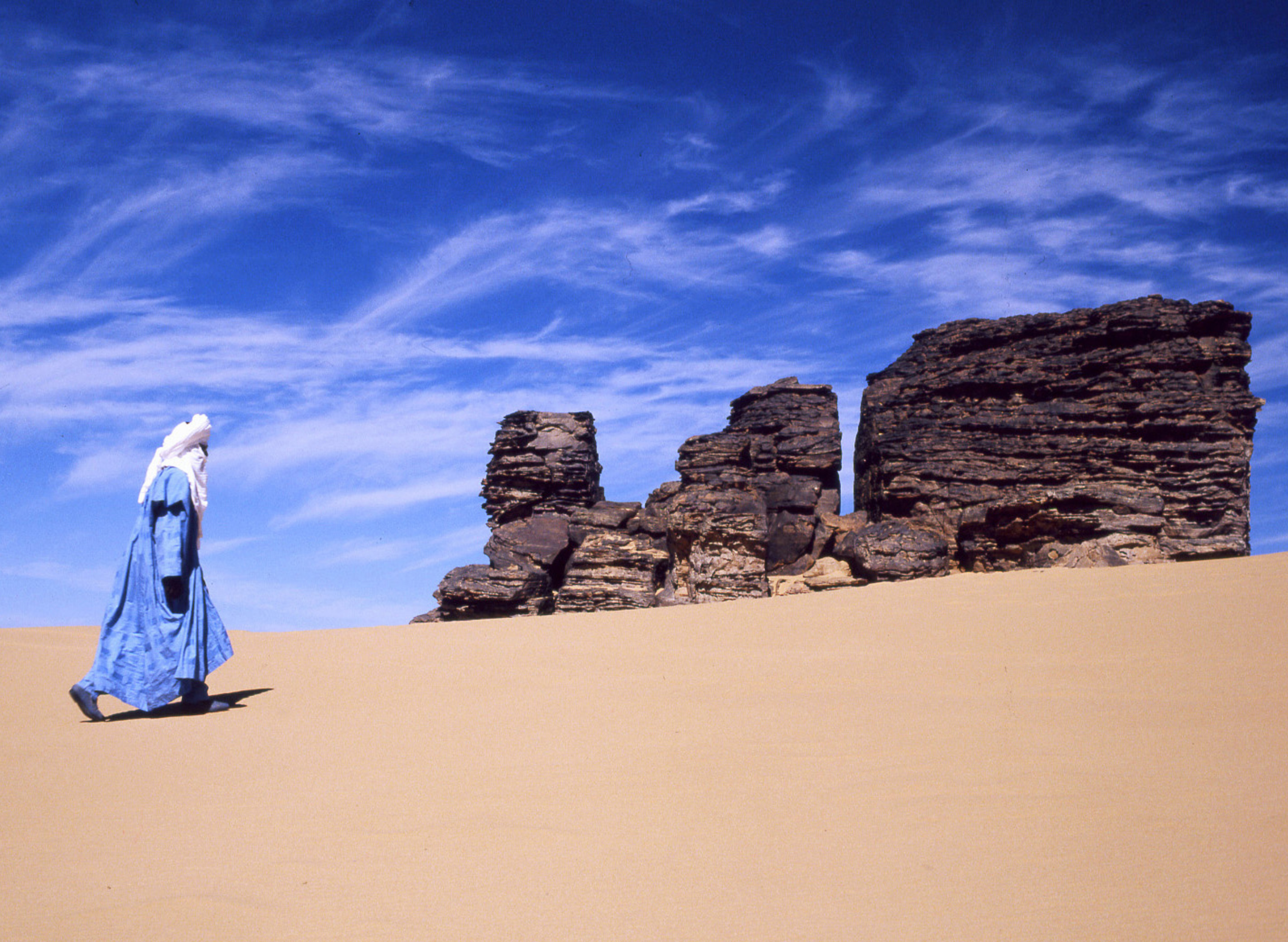 Taghit es un espléndido y precioso oasis al pie de gigantescas dunas doradas, ciudad llamada “la perla de la Saoura”. La vista de la población al llegar por la carretera es digna de las mejores postales. Su viejo ksar es uno de los más típicos. En esta pequeña villa se respira todavía ese ambiente casi medieval. Visitamos el extenso palmeral, los jardines, caminamos por las dunas, el viejo alcázar. Salimos de la ciudad para encontrar los grabados rupestres en el llamado Pequeño Tassili.